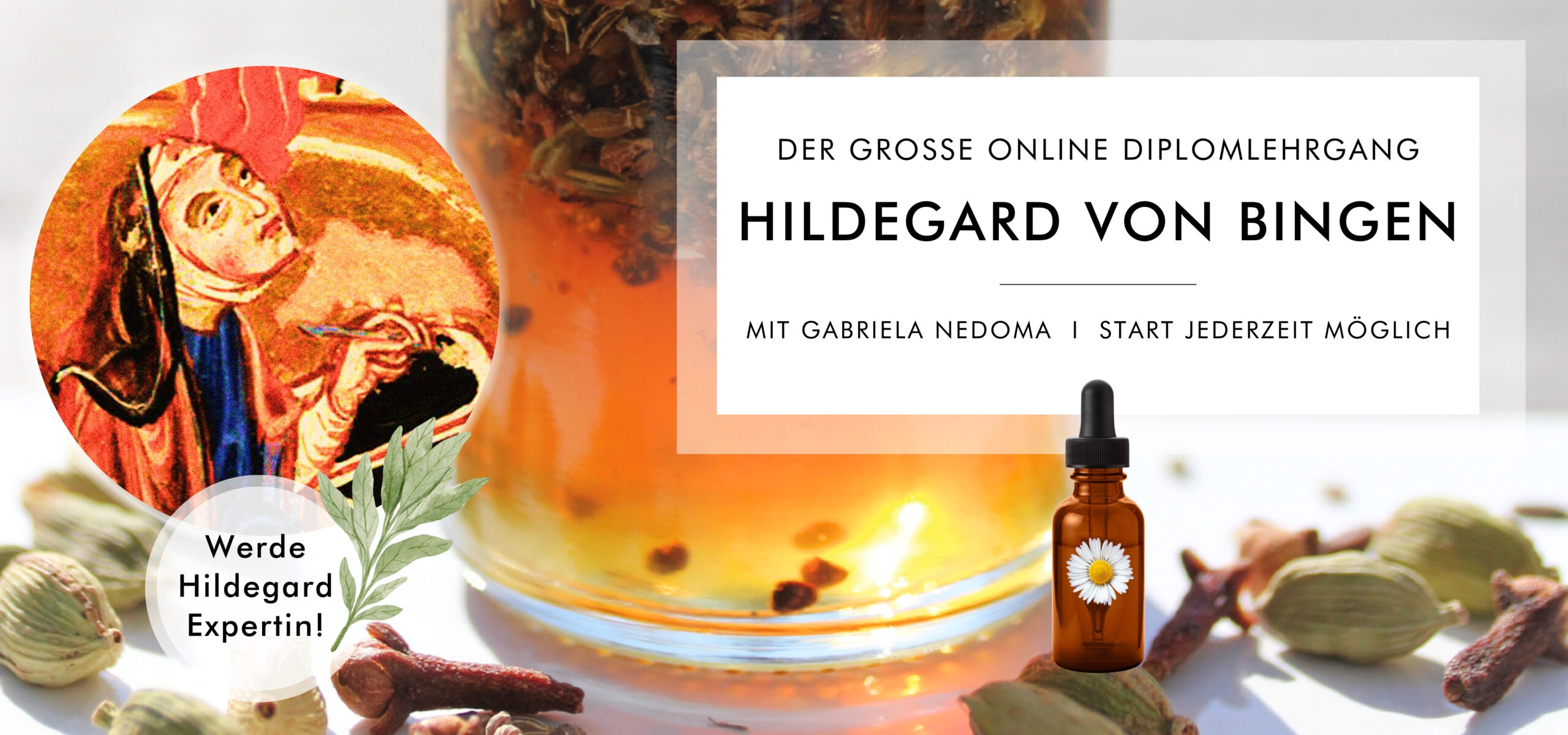 Diese Online–Diplomausbildung bietet ein einzigartiges Konzept, um die Naturheilkunde Hildegards von Grund auf zu erlernen – klar strukturiert, praxisnah und fundiert.